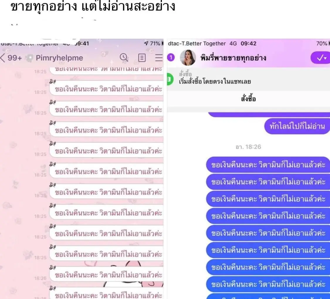 โดยดราม่าดังกล่าวเกิดขึ้นจากมีผู้ใช้เฟซบุ๊ก แชร์ภาพห้องแชทผลิตภัณฑ์วิตามินของพิมรี่พาย ว่ามีการของเงินคืน และไม่เอาวิตามินของ พิมรี่พายแล้ว ด้วยการส่งข้อความทักไปซ้ำย้ำๆเป็นจำนวนมาก เนื่องจากมีการทักไปทวงถามขอเงินคืน แต่ไม่มีการตอบกลับ