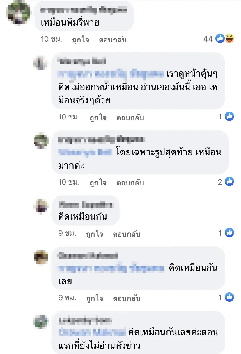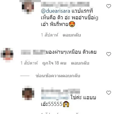 ทำเอาบรรดาแฟนๆเข้ามาคอมเมนต์เป็นเสียงเดียวกันเลยว่าทั้งคู่หน้าคล้ายกันมาก ถ้าไม่ดูชื่ออินสตาแกรมก็แยกไม่ออกเลยว่าเป็นใคร บ้างก็ทัก ดิว อริสรา ว่าคล้ายพิมรี่พายมาก แวปแรกคือใช่เลย