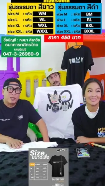 ซึ่งเสื้อดังกล่าวนั้น เบิร์ด ได้ออกแบบเสื้อ Mo meaw มาด้วย 2 แบบ 2 สี นั่นเอง ก็คือสีขาวและสีดำ โดยเสื้อแบบธรรมดา จะมีราคา 450 บาท เป็นแบบพรีออเดอร์ และเสื้อแบบลิมิเต็ดจะมีจำนวนแค่ 500 ตัว และจะมีนัมเบอร์ทุกตัว 1-500 ราคาอยู่ที่ 1,200 บาท