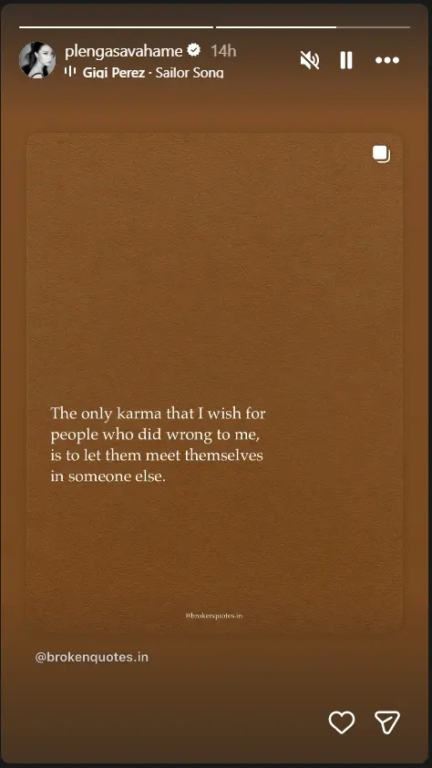 ล่าสุด (14 พ.ย. 68) เพลงได้โพสต์สตอรี่ที่หลายคนมองว่าช่างบาดลึกใจ เป็นข้อความว่า