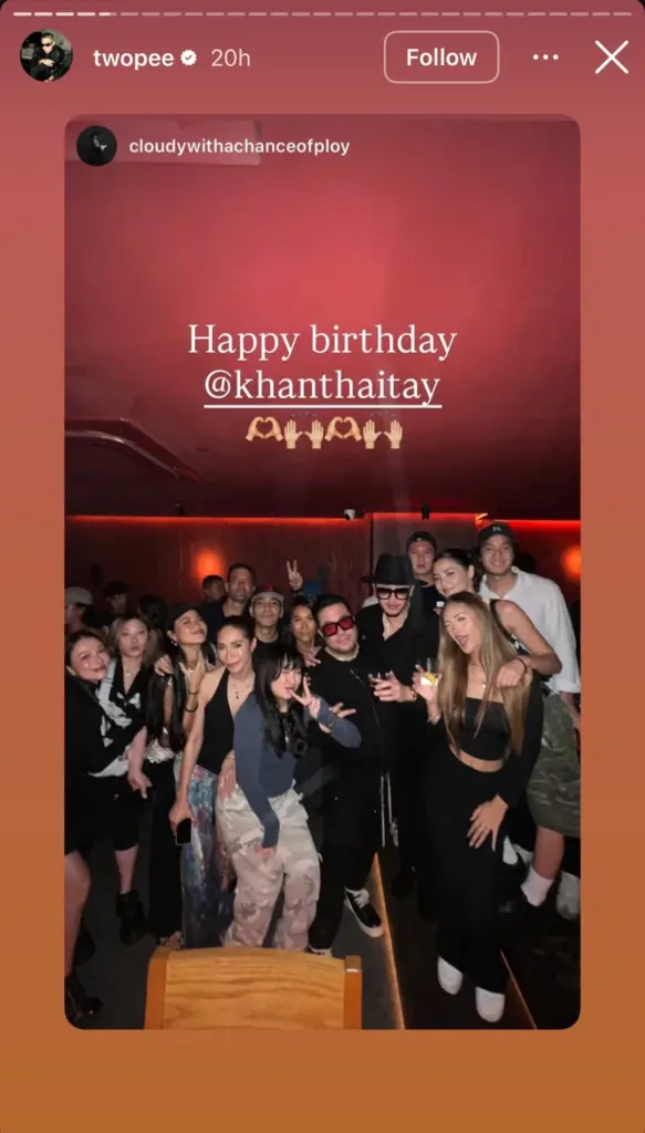 ซึ่งก่อนหน้านี้ โลกโซเชียลต้องสั่นสะเทือนอีกครั้ง เมื่อมีภาพที่ทั้งสองคนปรากฏตัวอยู่ใน ร้านอาหารเดียวกัน ก่อนจะมีอีกหนึ่งหลักฐานเด็ดที่ยิ่งตอกย้ำความสนิท – เมื่อทั้งคู่โผล่ร่วมงาน ปาร์ตี้วันเกิดของ “ขัน ไทยเทเนียม” ซึ่งจัดขึ้นแบบส่วนตัว มีเฉพาะคนสนิทเท่านั้นที่ได้ร่วมงาน