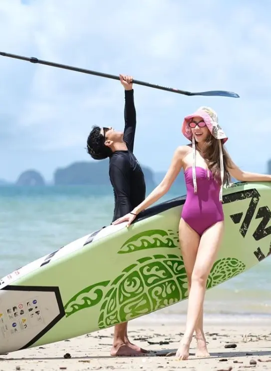 ซึ่งล่าสุด เจ้าตัวได้มีการโพสต์ภาพคู่ภรรยาที่กำลังสวมชุดว่ายน้ำ โชว์หุ่นแซ่บ พร้อมข้อความว่า “รำคาญ!!! ห้ามไม่ได้ก็ถ่ายด้วยซะเลย” ทำเอาแฟนคลับต่างเข้ามาคอมเมนท์แซวกันเป็นแถว ก็ แหม๋!!! ภรรยาทั้งสวย ทั้งแซ่บ ไม่แปลกใจเลยจ้าที่สามีจะหวงขนาดนี้
