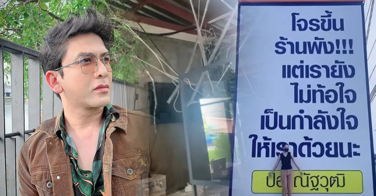 ป๋อ ณัฐวุฒิ ใจสู้หลังถูกโจรบุกร้านขโมยทรัพย์สินมีค่า ล่าสุดขึ้นป้ายอลังการประณามโจร พร้อมลงชื่อตัวเองตัวใหญ่ๆ ไม่กลัวก็ให้มันรู้กันไป
