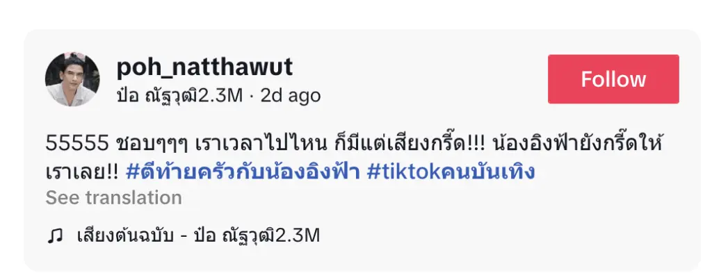 ต่อมาป๋อได้นำคลิปเหตุการณ์ขณะที่ถูกม้ากัดมาโพสต์ลงบน TikTok ส่วนตัว พร้อมแคปชั่นขำ ๆ ตามสไตล์ว่า: