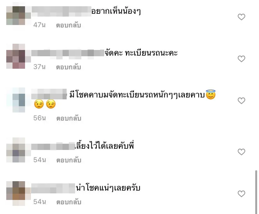 ทางด้านของ อ้วน รีเทิร์น ก็ได้เข้ามาคอมเมนต์ว่า “จะดังจะรวยจะมีโชคลาภ” พร้อมถามเพิ่มอีกว่า “รถทะเบียนอะไร”