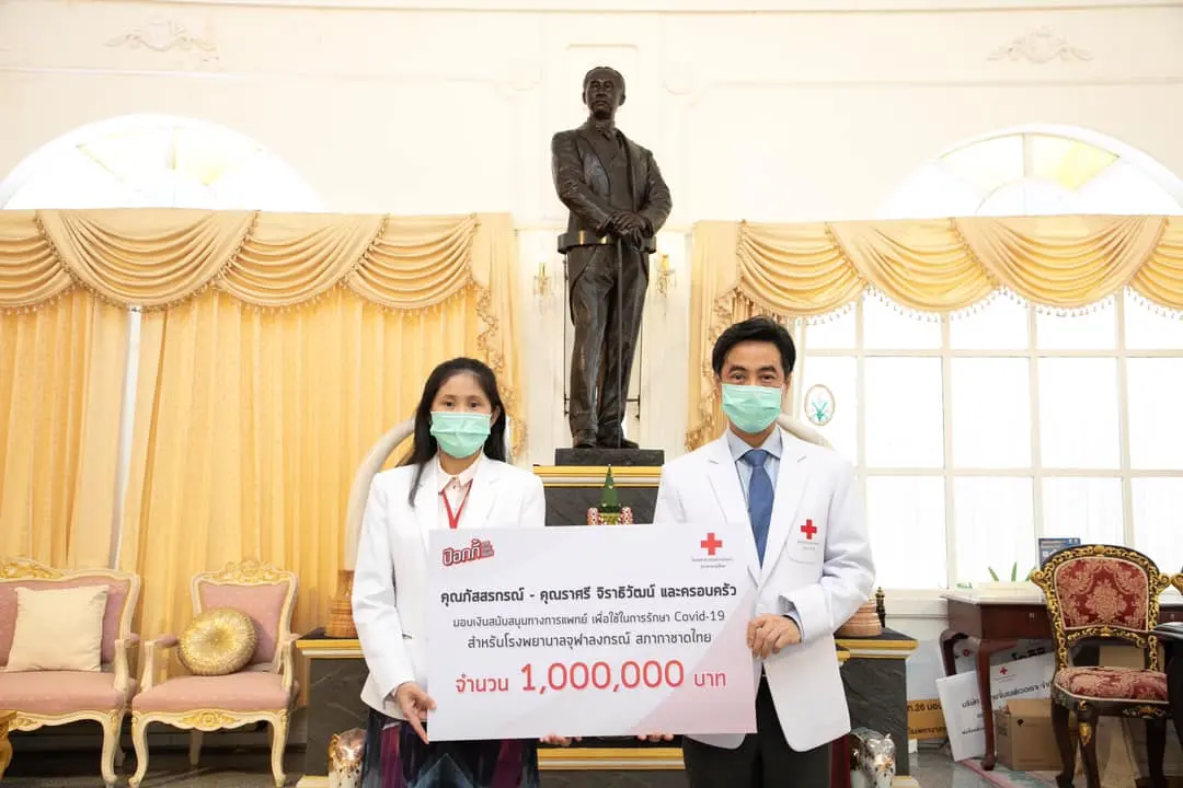 รวมถึงคู่สามี-ภรรยา ป๊อก ภัสสรกรณ์ และ มาร์กี้ ราศรี ที่มอบเงินจำนวน 1,000,000 บาท เพื่อสนับสนุนช่วยเหลือทางการแพทย์และป้องกันการแพร่ระบาดของโควิด19 ให้แก่โรงพยาบาลจุฬาลงกรณ์ สภากาชาดไทย