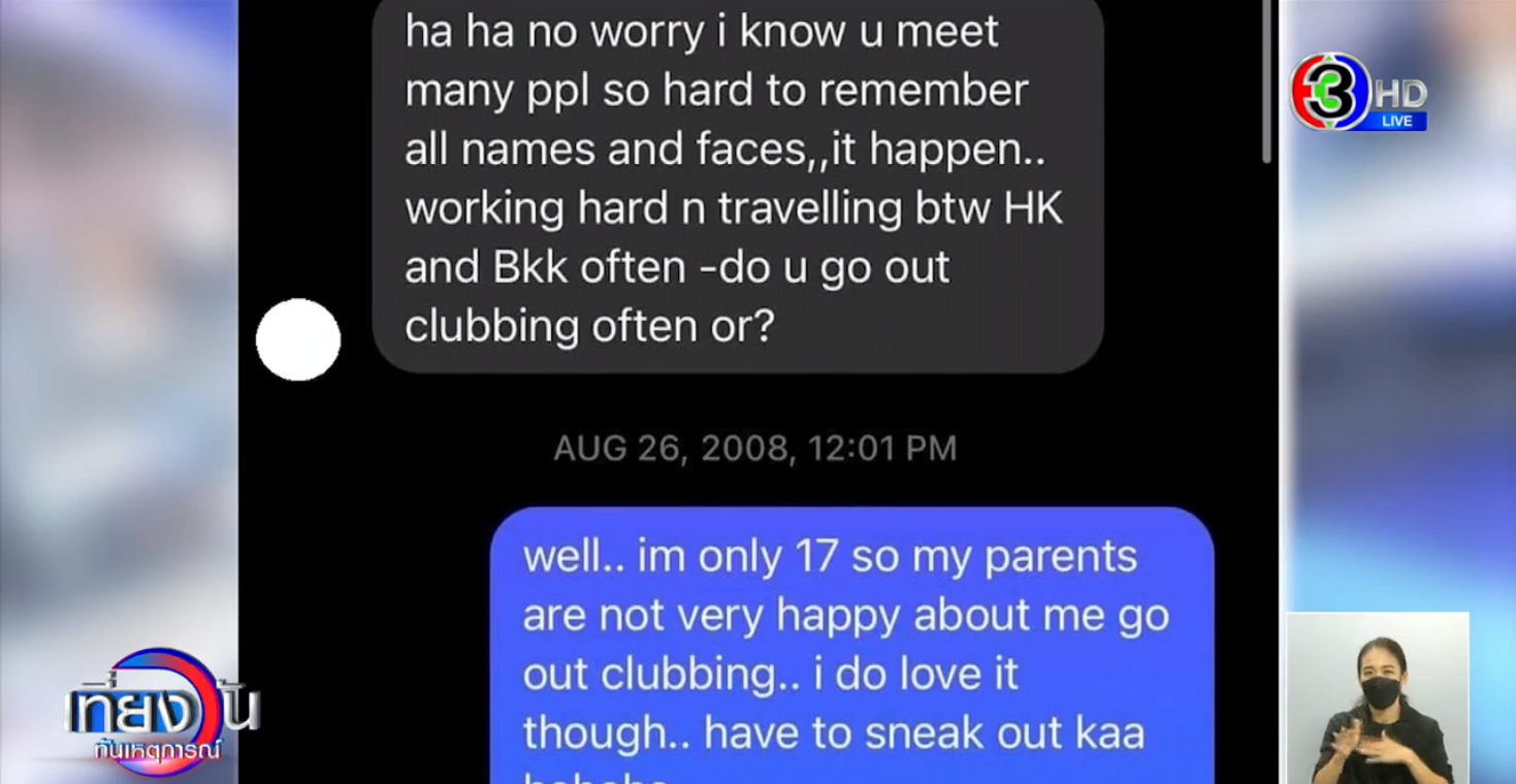 กระทั่งมาถึงคำถามสำคัญที่อีกฝ่ายได้ส่งมาถามไฮโซคนดังกล่าวว่า คุณชอบเที่ยวคลับไหม? ฝ่ายหญิงก็บอกว่า ฉันเพิ่งอายุ 17 เอง ที่บ้านไม่อยากให้ไปเที่ยว ไม่ชอบเรื่องแบบนี้