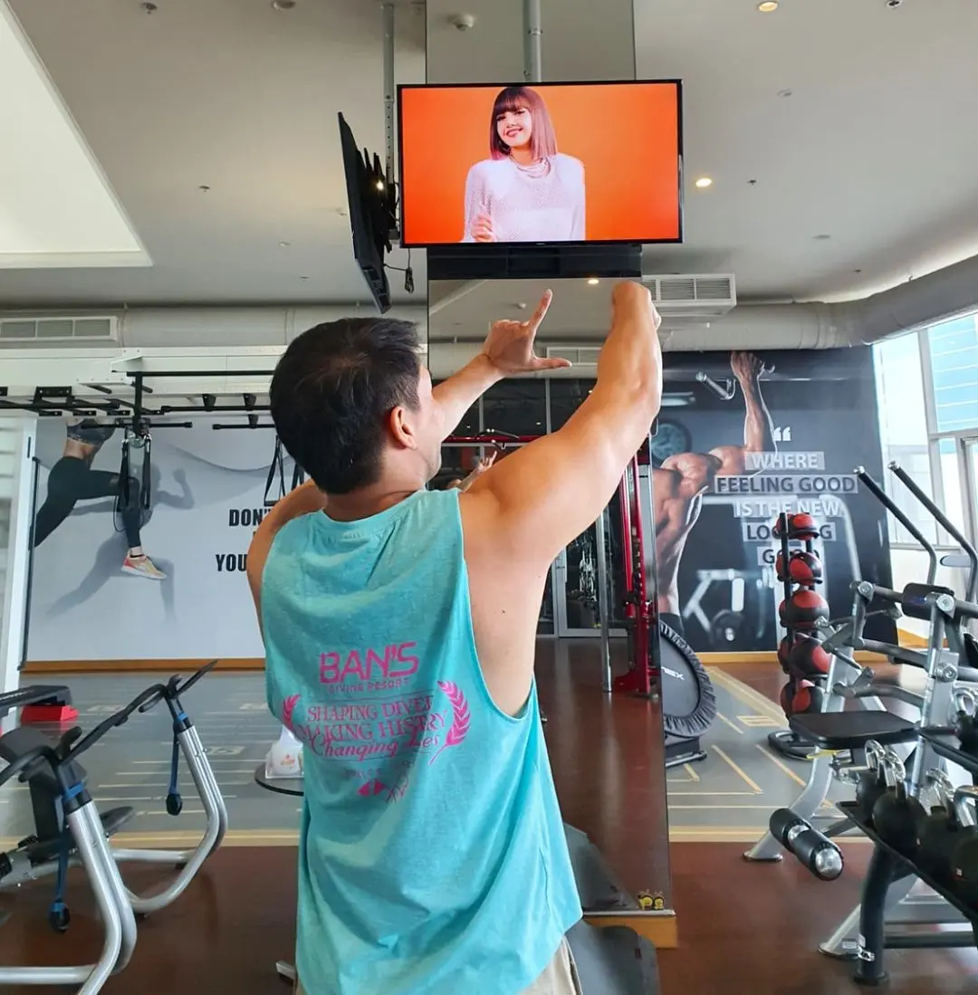 งานนี้ทำเอาหนุ่มป้องถึงกับหยุดออกกำลังกายทันที พร้อมกับมาแชะภาพหน้าทีวี 1 ช็อตพร้อมโพสต์ลงไอจีอย่างทันทีด้วยแคปชั่น “BlackPink in your area! #lalisa”