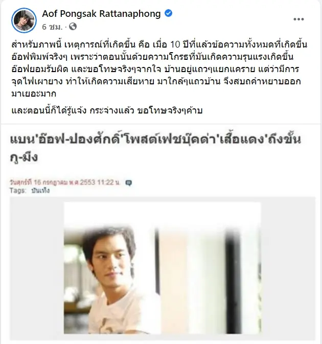 หลังจากนั้น ก็ได้มีชาวเน็ตขุดภาพและโพสต์ข่าวต่างๆที่อ๊อฟเคยด่าคนเสื้อแดงเมื่อ 10 ปีที่แล้ว ทั้งนี้ เจ้าตัวเผยว่า เคยด่าจริงๆด้วยความโกรธ และตอนนี้ก็ได้รู้แจ้ง กระจ่างแล้ว ขอโทษจริงๆค้าบ