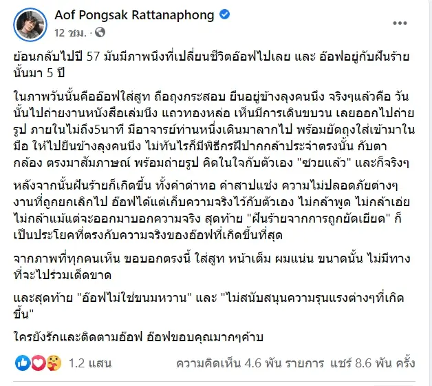 “ย้อนกลับไปปี 57 มันมีภาพนึงที่เปลี่ยนชีวิตอ๊อฟไปเลย และ อ๊อฟอยู่กับฝันร้ายนั้นมา 5 ปี