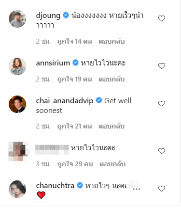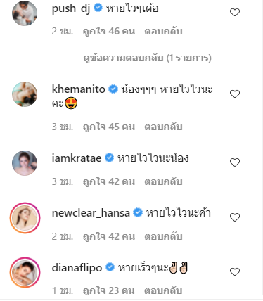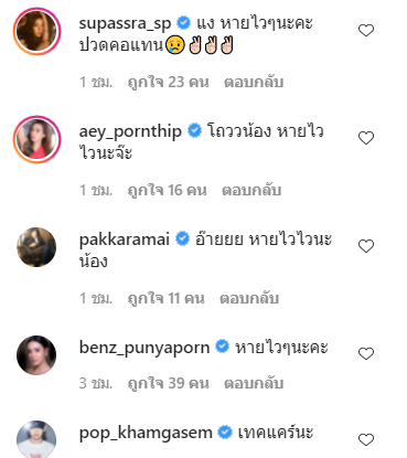 ทั้งนี้ก็มีเพื่อนในวงการบันเทิงได้เข้ามาให้กำลังใจ ให้ปุ๊กลุกหายป่วยไว ๆ อย่างมากมาย เช่น เอ๋ พรทิพย์ เก้า สุภัสสรา นิวเคลียร์ หรรษา ฯลฯ