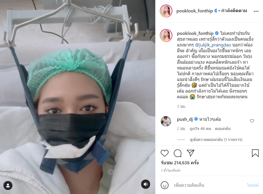 ทำเอาทุกคนเป็นห่วงกันเลยทีเดียว เมื่อสาว ปุ๊กลุก ฝนทิพย์ ได้ออกมาพร้อมคลิปขณะที่กำลังนอนประคองคออยู่ที่โรงพยาบาล