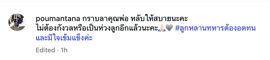 โดยล่าสุด ปู มัณฑนา ได้แจ้งข่าวเศร้าผ่านอินสตาแกรมส่วนตัว @poumantana ด้วยการโพสต์ภาพขณะกราบลาคุณพ่อเป็นครั้งสุดท้าย พร้อมข้อความสุดซึ้งว่า