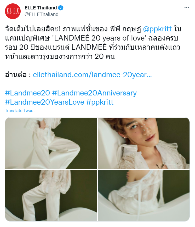 โดยทวิตเตอร์ ELLE Thailand ได้เผยแพร่ภาพแฟชั่นเซ็ตดังกล่าวของหนุ่ม พีพี กฤษฎ์ ออกมาจำนวน 4 ภาพด้วยกัน ซึ่งแต่ละภาพบอกได้คำเดียวเลยว่าเจ้าตัวโชว์สกิลการโพสท่ามองกล้องต่าง ๆ ได้อย่างครบเครื่อง