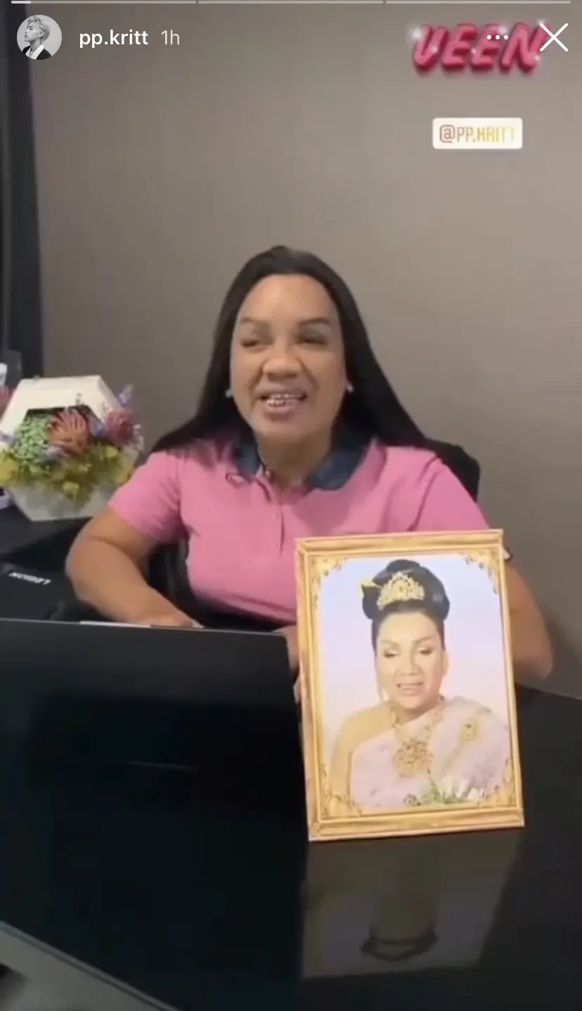 ล่าสุด แม่หญิงลี หรือ พระมหาเทวีเจ้าแห่งเมืองทิพย์ ได้มีการส่งคลิปถึง พีพี ว่า ออกแถลงการณ์ในนามของพระมหาเทวีเจ้าแห่งเมืองทิพย์นะคะ วันนี้เราจะมาอวยยศ อวยพรให้กับน้องพีพี ขอให้น้องมีความสุขแล้วก็หายจากโควิดที่ 19 อย่าลืมนะคะด้วยความรัก ความห่วงใยจากพระมหาเทวีเจ้า แล้วก็ขอให้มีความปังปุริเยสืบไป