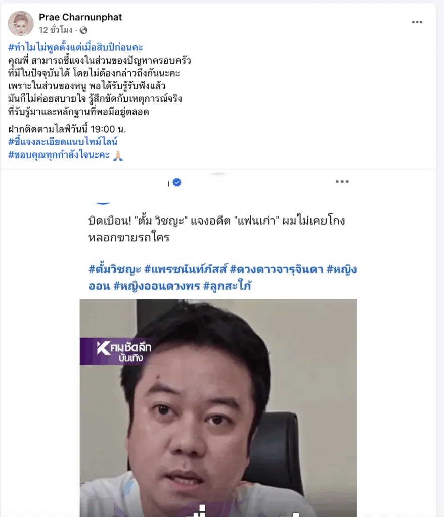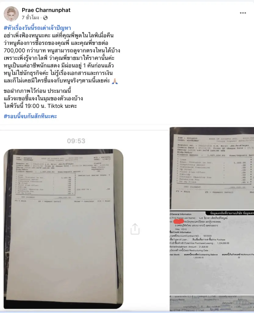 ล่าสุดทางด้านแพรได้ ออกมาเคลื่อนไหวผ่านโซเชียล โต้กลับแบบจัดเต็มหลังจากตั้มได้ไลฟ์ชี้แจงประเด็นเก่าเกี่ยวกับ กรณีการซื้อขายรถเต่า ที่ถูกพูดถึงอีกครั้ง