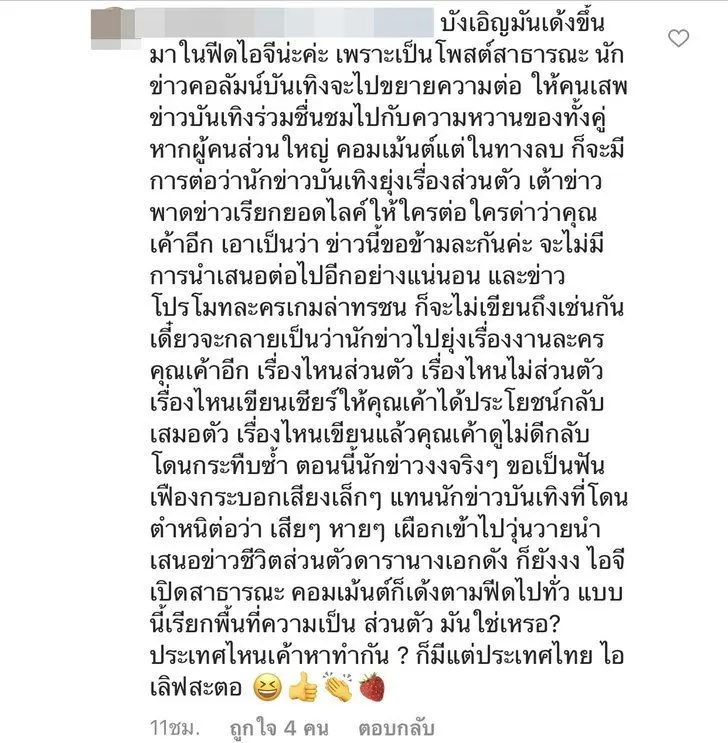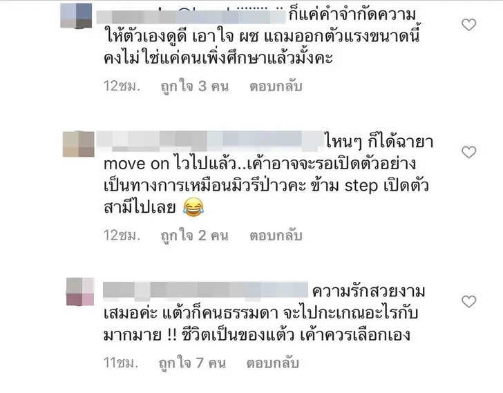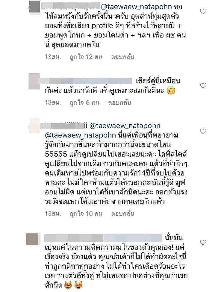 อย่างไรก็ตาม ก็ยังมีเหล่าบรรดาเเฟนคลับ และชาวเน็ตที่เข้าไปให้กำลังใจแต้ว กับความรักครั้งใหม่ในครั้งนี้อย่างล้นหลามด้วยเช่นกัน