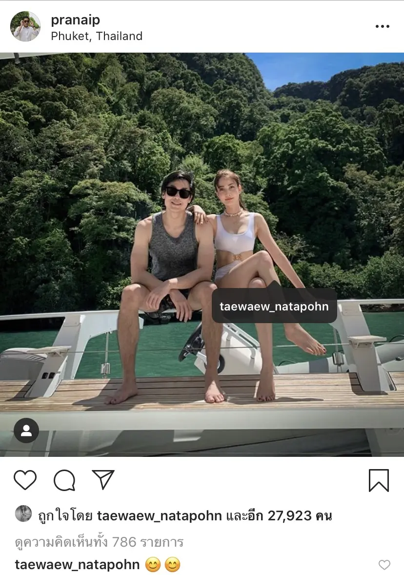 งานนี้ด้านแฟนหนุ่มอย่างไฮโซณัยเองก็ไม่น้อยหน้า ได้มีการลงรูปภาพเดียวกันลงบนอินสตาแกรมส่วนตัว ที่ได้ออกทริปเที่ยวในครั้งนี้ด้วย งานนี้สาวแต้วก็ได้เข้าไปคอมเมนต์เป็นตัวอิโมจิยิ้มอีกด้วย เรียกได้ว่าทริปเที่ยวครั้งนี้ทั้งคู่ก็มีโอกาสเปิดตัวกันอย่างเป็นทางการแล้วแน่นอน