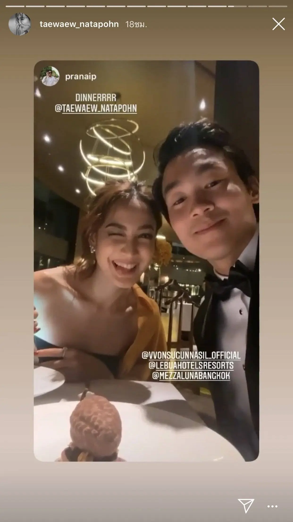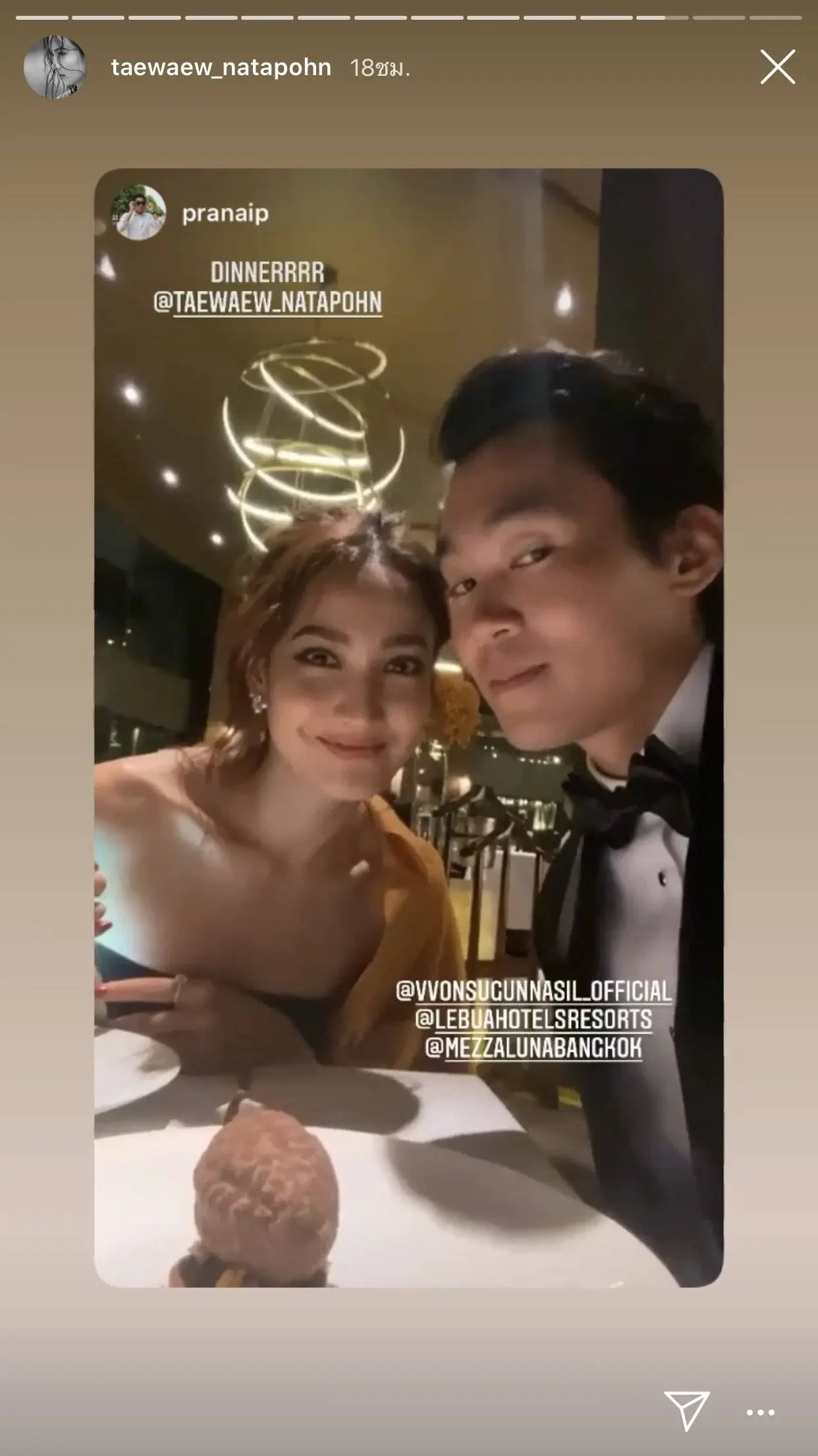 โอ้ยยยยยยย !! เรียกได้ว่าหวานเเบบน้ำตาลต้องกราบค่าาสำหรับ แต้ว ณฐพร และหวานใจคนใหม่อย่าง ไฮโซณัย ที่ก่อนหน้านี้ทั้งคู่ได้ควงกันไปดินเนอร์สุดพิเศษบนตึกหรู ท่ามกลางบรรยากาศเเบบสุดเเสนโรเเมนติก อีกทั้งก่อนหน้านี้ก็ยังไปสวีทริมหาดทะเลเเสนสวย แต่งตัวสุดแซ่บกันอีกด้วย โดยล่าสุดด้านฝ่ายชายอย่างไฮโซณัยก็ไม่รอช้า ปล่อยภาพเซ็ตดินเนอร์สุดหรู พร้อมดอกไม้มอบให้สาวแต้ว แหม่ๆ ตอนเห็นในไอจีสตอรี่ว่าหวานเเล้ว ปล่อยภาพออกมาให้ชมเป็นชุดใหญ่ หวานกว่า !!