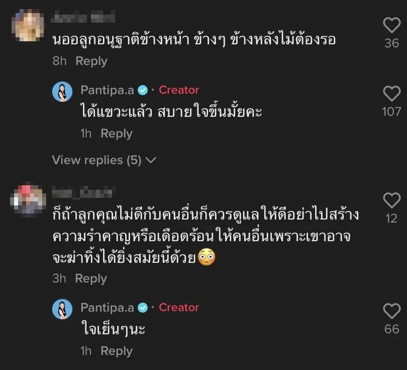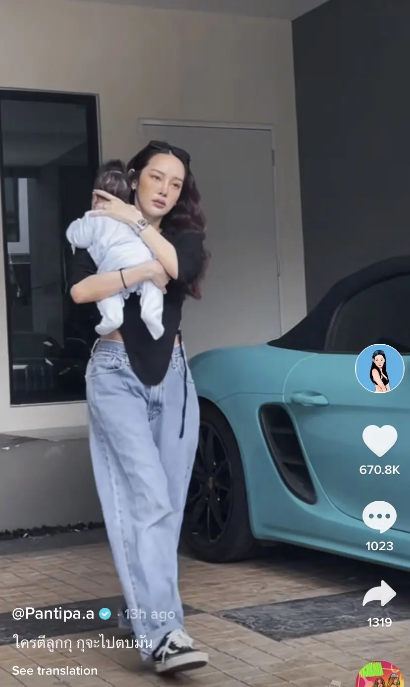 จากกรณีที่ ปุ้มปุ้ย พรรณทิพา โพสต์คลิปที่กำลังอุ้มลูก ผ่านทาง TikTok พร้อมแคปชั่นว่า ใครตีลูกกู กูจะไปตบมัน ทำเอาผู้ใช้ TikTok บางส่วนโผล่คอมเมนต์ในด้านลบ ซึ่ง ปุ้มปุ้ย ก็ได้มีการตอบกลับไปว่า ได้แขวะแล้ว สบายใจขึ้นมั้ยคะ , ใจเย็นนะ