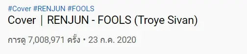 ขึ้นมาถึงยอด 7 ล้านวิวแล้ว! กับวิดิโอโคฟเวอร์เพลง Fools ของ เหรินจวิ้น NCT หรือน้องอินจุน เมนโวคอลเสียงหวานแห่งวง NCT 00ไลน์