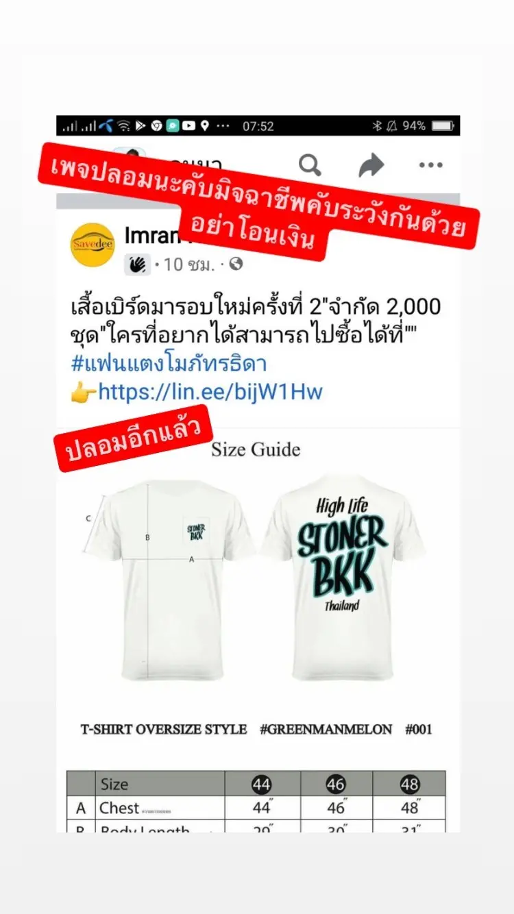ล่าสุดด้าน เบิร์ด แฟน แตงโม ก็ได้ออกมาแจ้งข่าวกันอีกครั้งหลังยังถูกมิจฉาชีพปลอมเพจร้านเสื้ออย่างต่อเนื่องทั้ง เฟซบุ๊ก ไลน์ และ ไอจี ทั้งยังบอกอีกว่า ไลน์ออฟฟิศชื่อนี้ Stoner BKK Shop ปลอมนะครับ