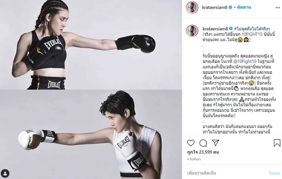 7 พ.ย. 63 จากกรณี กระแต อาร์สยาม เคยโพสต์อยากขึ้นชก 10 Fight 10 โดยระบุว่า ” …แตรโคตรอยากกลับไปชกมวยมากๆ เห็นรายการ 10 Fight 10 ซีซั่นแรก แล้วแบบคิดในใจ น่าจะมีมวยหญิงบ้างเนาะ หลังจากนั้น ไม่นาน พี่ๆ ทีมงาน 10 Fight 10 ก็ติดต่อมาให้แตรขึ้นชก ! ซีซั่น 2 ฉันนี่ร้องกรี๊ดเลย !! ดีใจมากกกกก !! แต่แล้วก็ อด !! เพราะหลังจากนั้น พี่ๆ ติดต่อกลับมาอีกทีว่า น้องแตร พี่หาคู่ชกให้ไม่ได้เลยค่ะ ไว้โอกาสหน้านะคะ พี่พยายามหาแล้ว #เสียจายยยยยยมาก แต่เข้าใจจริงๆ ค่ะ ถ้ามีโอกาส แตรอยากเป็นส่วนหนึ่งในวงการมวย และในรายการ 10 Fight 10 สักครั้งนะคะ #คิดถึงสังเวียนผ้าใบ #คิดถึงน้ำหวานน้อยศักดิ์บุญมา”