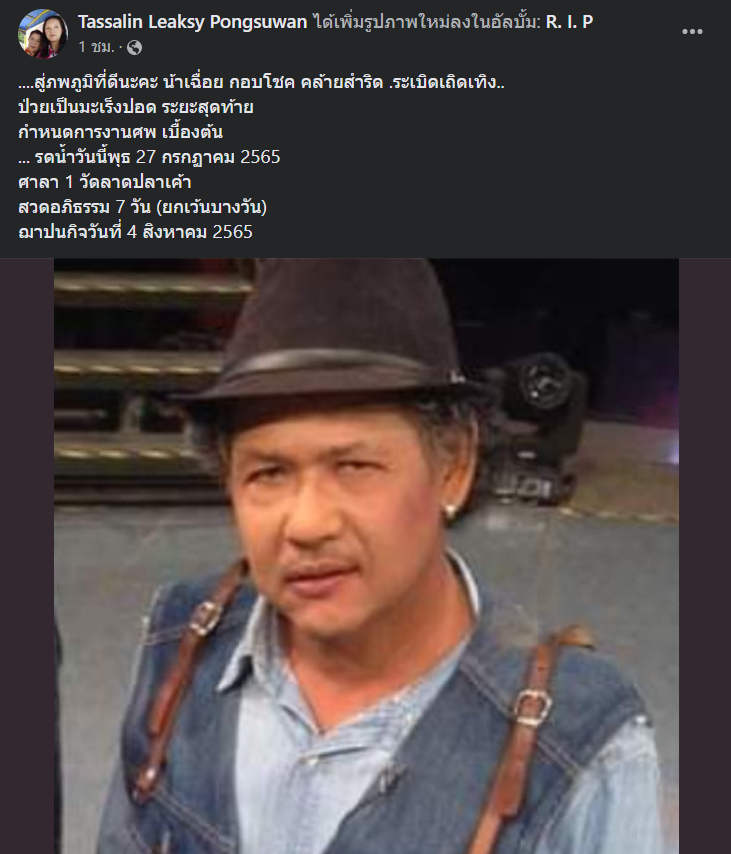 สิ้นตำนาน น้าเฉื่อย ระเบิดเถิดเทิง หลังล้มป่วยมะเร็งปอด ระยะสุดท้าย กำหนดการ รดนํ้าศพ พุธ 27 ก.ค. 65 ศาลา 1 วัดลาดปลาเค้า