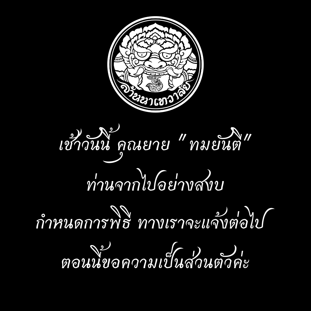 ขณะเดียวกัน เฟซบุ๊ก ล้านนาเทวาลัย Lanna Devalai ได้ออกมาโพสต์ข้อความเช่นกันว่า เช้าวันนี้ คุณยาย ทมยันตี ท่านจากไปอย่างสงบ กำหนดการพิธี ทางเราจะแจ้งต่อไป ตอนนี้ขอความเป็นส่วนตัวค่ะ