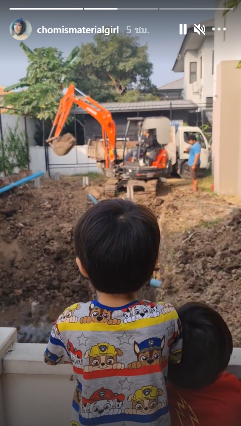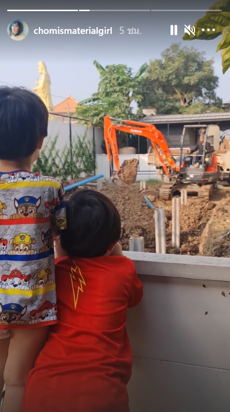 โดยแม่ชม ก็ได้ลงคลิปของน้องสายฟ้า และน้องพายุ ในสตอรี่ไอจี กำลังปีนบันได พร้อมเกาะรั้วดูการขุดดิน ลงเสาเข็มอยู่อย่างตื่นตาตื่นใจ