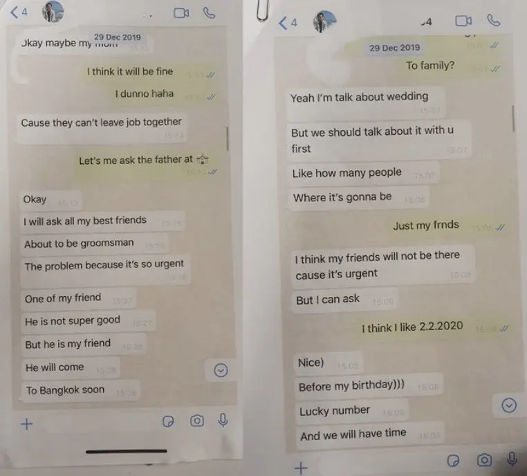 ซึ่งต่อมาได้มีการเผยแชทลับระหว่าง ซาร่า และ วาดิม ที่กำลังเจรจากันถึงแพลนการแต่งงานในครั้งนี้อีกด้วย ซึ่งภายในแชทได้มีการระบุวันที่ พร้อมข้อความไว้ชัดเจน