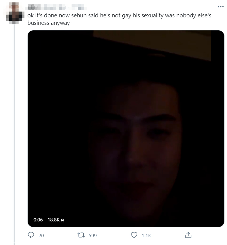 เมื่อวันที่ 19 ก.พ. ที่ผ่านมา หนุ่มเซฮุนก็ได้เซอร์ไพรส์เหล่าแฟนคลับด้วยการออกมาไลฟ์ตอนกลางดึก ซึ่งเซฮุนก็ได้บอกว่า เขาเพลงดูหนังเศร้าจบมาแล้วนอนไม่หลับ เลยออกมาพูดคุยกับแฟน ๆ แทนที่จะอยู่คนเดียว ก่อนจะเจอคำถามสุดพีคเป็นภาษาอังกฤษว่า “Are you gay?” ที่แปลว่า “คุณเป็นเกย์หรือเปล่า?”