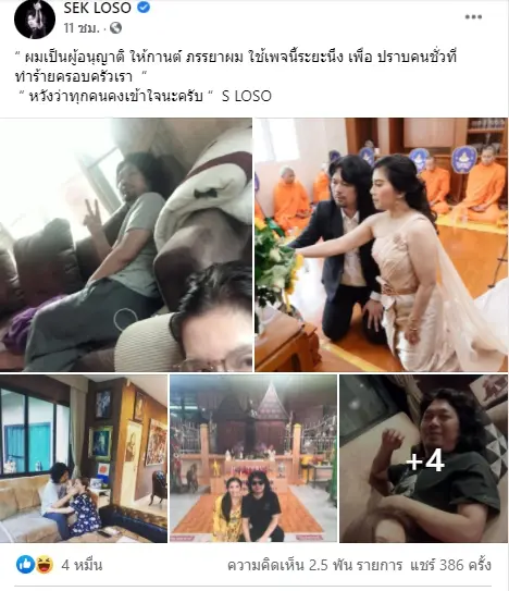ผมเป็นผู้อนุญาต ให้กานต์ ภรรยาผม ใช้เพจนี้ระยะนึง เพื่อ ปราบคนชั่วที่ทำร้ายครอบครัวเรา หวังว่าทุกคนคงเข้าใจนะครับ S LOSO หลังจากนั้นไม่นานเหล่าแฟนคลับ ก็ยังคงเข้ามาคอมเมนต์ในทิศทางที่ไม่เชื่อใจอย่างสนิทว่า เสกเป็นคนโพสต์เนื้อหาดังกล่าวนี้ด้วยตัวเอง พร้อมกับคอมเมนต์ไปในทางเดียวกันว่า ดูออกนะคะ , ให้พี่เสกพูดเอง และหนูขอเป็นคลิปค่ะ , รอเฮียกลับมา , คิดเอง เออเอง อนุญาตเอง ดูดเอง ดีดเอง พังเอง