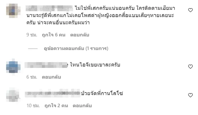 งานนี้แฟนคลับหลายๆคนที่ติดตามไอจีออฟฟิเชียลของเสก ก็ออกมาคอมเมนต์กันยกใหญ่ โดยส่วนมากก็พอจะรู้ได้ว่านี้ไม่ได้การโพสต์ของ เสก แต่เป็นฝีมือของ กานต์ วิภากร ภรรยาของเจ้าตัวที่ใช้ไอจีของเสกในการโพสต์โจมตีอีกฝั่ง ซึ่งหลายเสียงต่างก็พูดเหมือนกันว่า สงสารครอบครัวและคนรอบข้าง พร้อมทั้งยังคอมเมนต์ทวงคืนไอจีให้ทางด้านของเสกกันอีกด้วย
