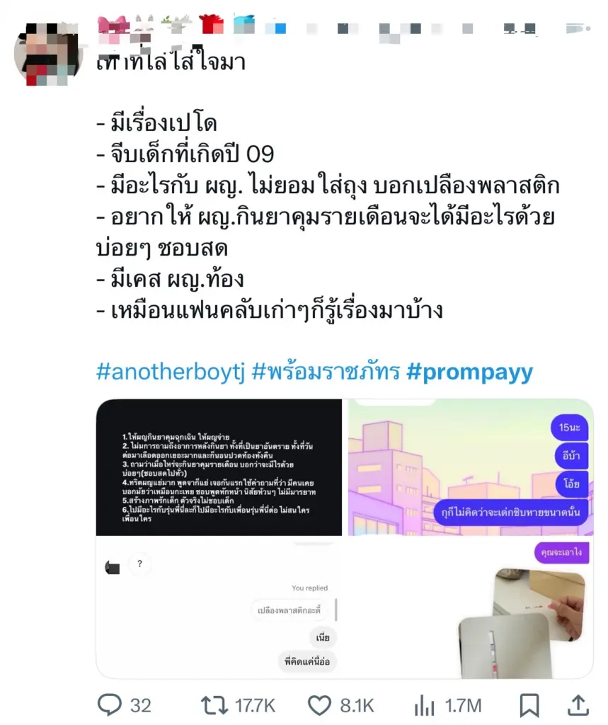 ประเด็นนี้สร้งความแตกตื่นมาก เนื่องจาก เป็นเรื่องของอายุของเหยื่อที่อายุยังไม่พ้นอายุ 20 ปี อีกทั้งประเด็นนี้ฝ่ายชายยังขอให้ผู้หญิงมีเพศสัมพันธ์แบบไม่ป้องกัน ส่งผลให้ฝ่ายหญิงตั้งครรภ์โดยไม่พร้อม ทั้งนี้ฝ่ายชายขอให้ผู้หญิงเอาเด็กออก เรียกได้ว่า เป็นอีกหนึ่งประเด็นใหญ่ของสังคมไทยในขณะนี้