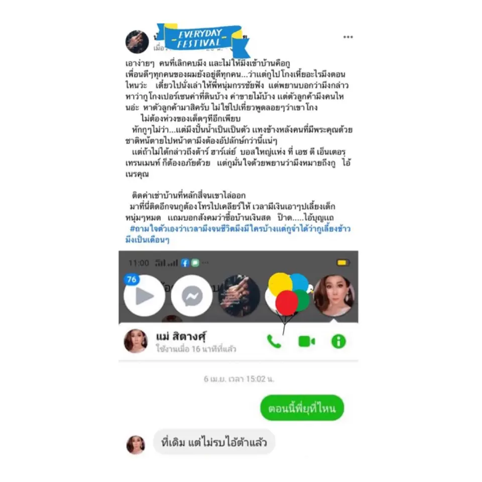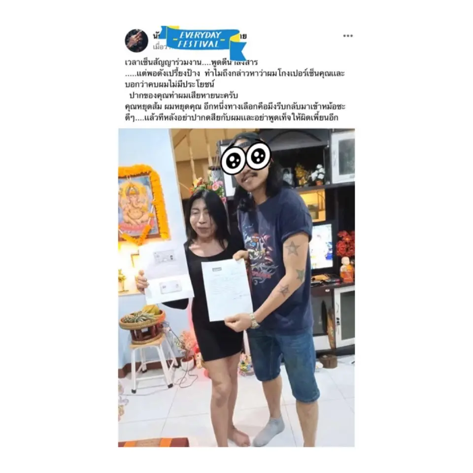 หลังจากที่มีนักร้องปริศนา อ้างเป็นเจ้าของบริษัทที่ สิตางศุ์ เซ็นสัญญาด้วยออกมาแฉว่า “เวลาเช็นสัญญาร่วมงาน….พูดดีน่าสงสาร….แต่พอดังเปรี้ยงป้าง ทำไมถึงกล่าวหาว่าผมโกงเปอร์เซ็นคุณเเละบอกว่าคบผมไม่มีประโยชน์ปากของคุณทำผมเสียหายนะครับ คุณหยุดส้ม ผมหยุดคุณ อีกหนึ่งทางเลือกคือมึงรีบกลับมาเข้าหม้อซะดีๆ….แล้วที่หลังอย่าปากเสียกับผมและอย่าพูดเท็จให้ผิดเพี้ยนอีก”