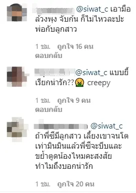 ซึ่งทันทีที่คลิปดังกล่าวได้แพร่ออกไปนักแสดง พิธีกรชื่อดัง ซี ศิวัฒน์ ก็ได้เข้ามาคอมเมนต์ในโพสดังกล่าวหนังจากที่เห็นพ่อกับลูกหยอกล้อด้วยความเอ็นดู ว่า