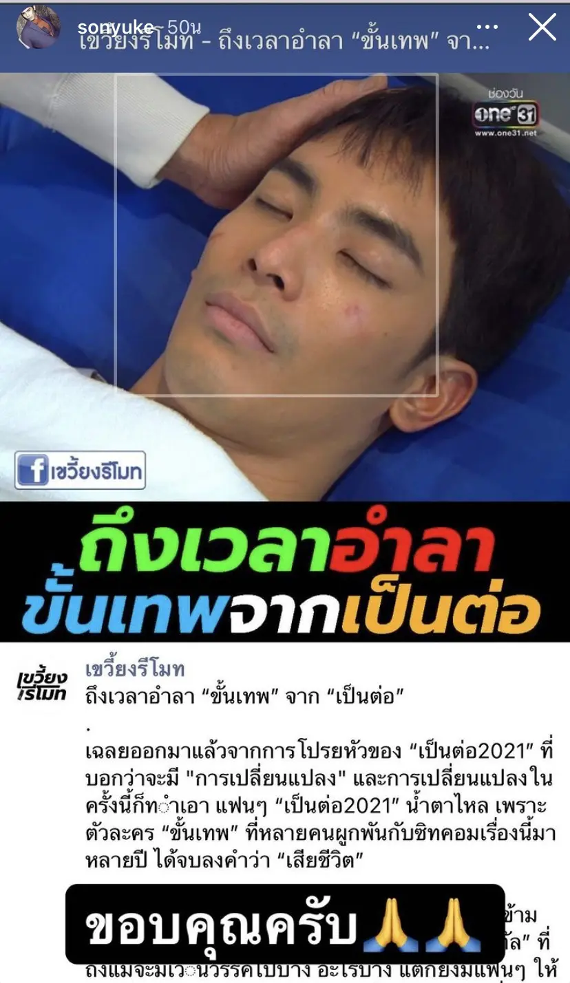 หลังจากที่ซิทคอม เป็นต่อ 2021 ได้ปิดฉากขั้นเทพ ด้วยการเสียชีวิต ทำเอาบรรดาแฟนๆเป็นต่อถึงขั้นร้องไห้น้ำตาท่วมจอ และเข้าไปคอมเมนต์แสดงความรู้สึกเศร้า เสียใจกับบทซิทคอมในอินสตาแกรมของ สน ยุกต์ กันอย่างมากมาย