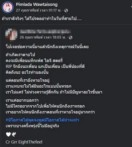 ล่าสุด สอดอ ได้มีการเคลื่อนไหวอีกครั้ง ซึ่งเป็นข้อความที่อ่านแล้วแทนใจใครหลายคนเลยทีเดียว