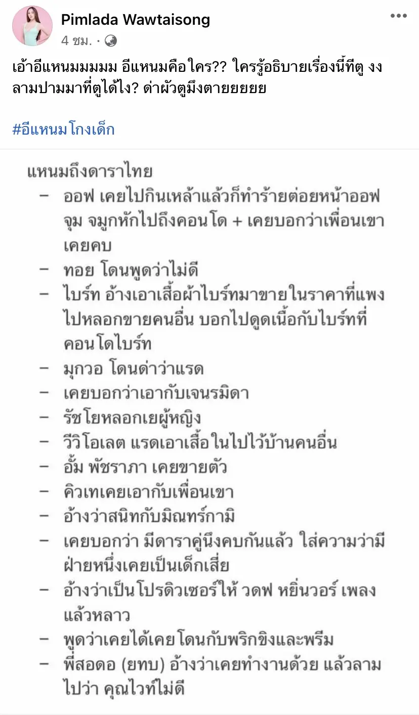 ซึ่งประเด็นมันมีอยู่ว่า ข้อความดังกล่าวนี้ ได้มีการพาดพิงถึงเหล่าดาราเป็นจำนวนมาก รวมถึง สอดอสไตล์ โดยได้ระบุข้อความว่า