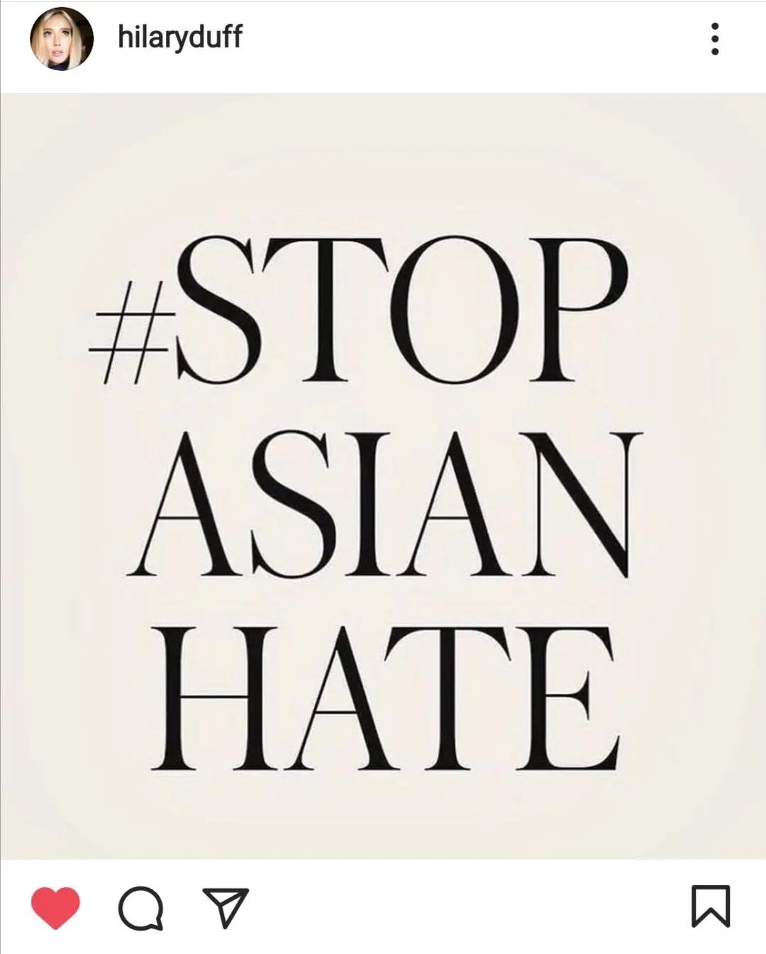 งานนี้เหล่าเซเลป ดารา นักร้องต่างประเทศ จึงร่วมกันออกมาติดแฮชแท็ก StopAsianHate เพื่อเรียกร้องให้ยุติดความรุนแรงแก่ชาวเอเชีย ที่อาศัยในต่างประเทศ