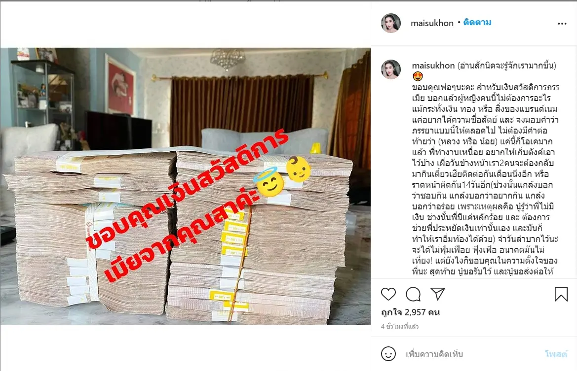 ล่าสุด ก็ลงภาพเงินก้อนโต พร้อมระบุแคปชั่นว่า