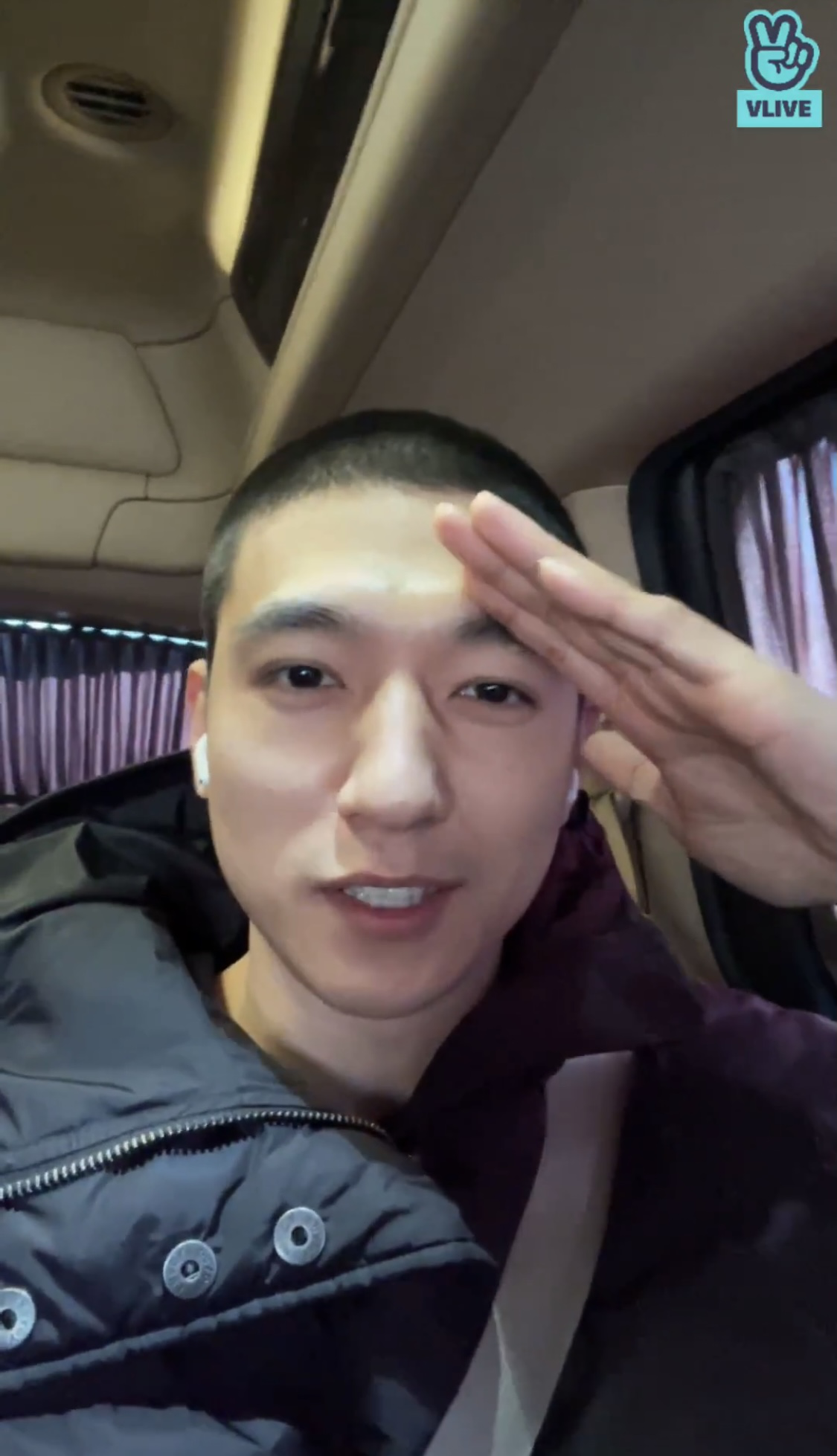 เช้าวันนี้ (8 มี.ค. 2021) หนุ่มซองจินได้เข้ามาไลฟ์ผ่านทาง VLIVE กับชื่อคลิป “วันทยาหัตถ์!!!” พร้อมทักทายแฟนๆ เหมือนอย่างเคย แต่สิ่งที่ต่างไปคือลุคผมเกรียนแปลกตา (แต่กระชากใจ) ซึ่งเจ้าตัวก็ไม่ปล่อยให้มายเดย์รอนาน เฉลยทันทีเลยว่ากำลังเดินทางไปศูนย์ฝึกทหาร เพื่อเข้ากรมในวันนี้
