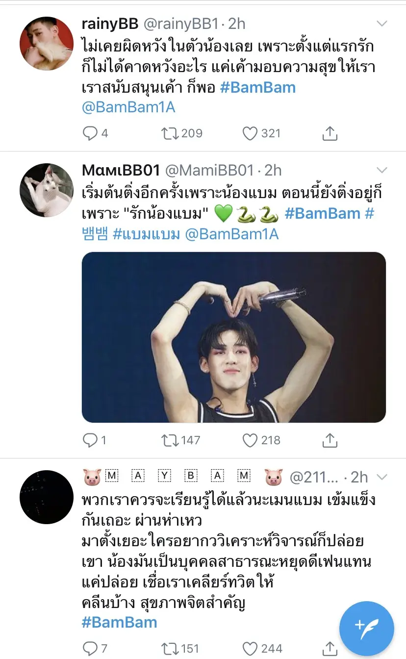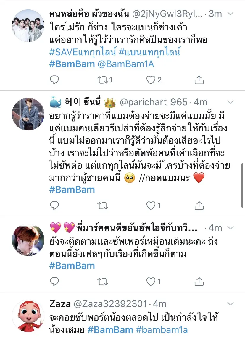และล่าสุดทางด้านเหล่าแฟนคลับของแบมแบมก็ได้ออกมาโพสต์ข้อความเพื่อส่งกำลงใจให้กับแบมแบม พร้อมออกมาปกป้องและบอกว่าจะซัพพอร์ตต่อไป