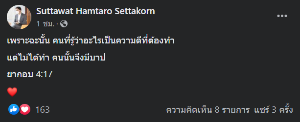 ‘เพราะฉะนั้น คนที่รู้ว่าอะไรเป็นความดีที่ต้องทำ แต่ไม่ได้ทำ คนนั้นจึงมีบาป ยากอบ 4:17’