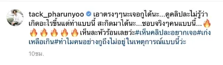 โดยทางด้านของนักแสดงคุณพ่อลูกหนึ่งอย่าง แทค ภรัณยู ก็ถึงกับออกอาการเดือดจัด! หลังจากที่ได้เห็นข่าว ด้วยความที่ก็มีลูกเหมือนกัน จึงทนไม่ไหว ขอออกมาเคลื่อนไหวถึงประเด็นที่ในไอจีของตัว