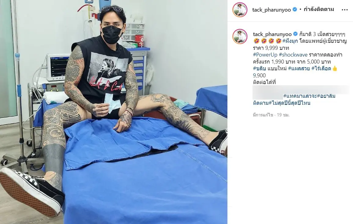 ‘ก็มาดิ 3 เม็ดสวย ๆ ฝังมุกโดยแพทย์ผู้เชี่ยวชาญ’ งานนี้ก็ทำเอาผู้ใช้งานโซเชียลถึงกับเข้าไปถล่มคอมเมนต์แบบขำ ๆ ในอินสตาแกรมของหนุ่มแทคกันอย่างคับคั่ง อาทิ ทำเสร็จแล้วขอดูรีวิวหน่อยค่ะ, ขอรีวิวก่อนตัดสินใจทำครับ เป็นต้น