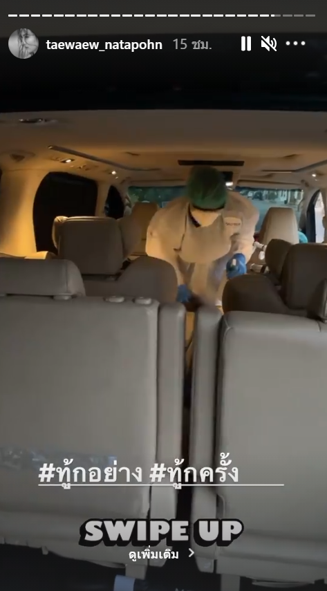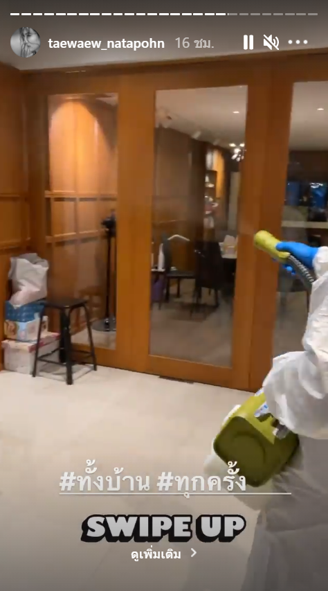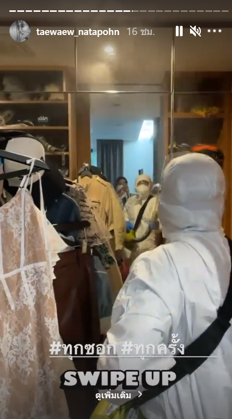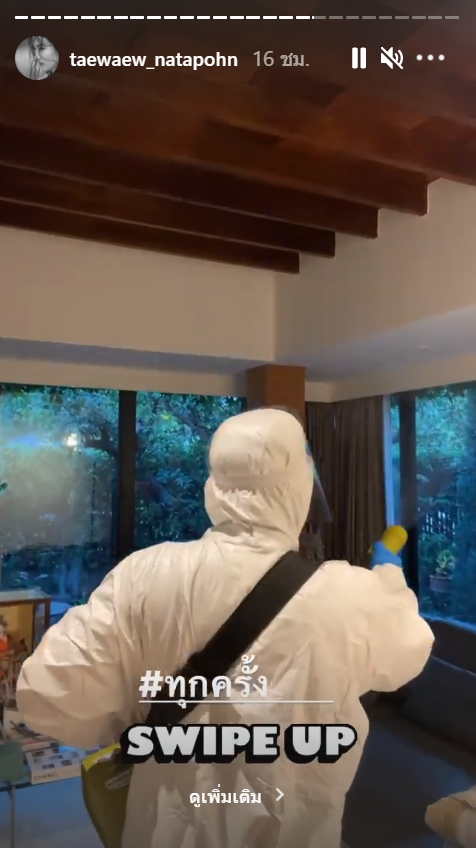 โดยล่าสุด สาวแต้ว ได้มาอัปเดตผ่านทางไอจีสตอรี่ เป็นขั้นตอนการฉีดฆ่าเชื้อในตัวบ้านโดยเจ้าหน้าที่มีการใส่ชุดป้องกันและถุงมือ หน้ากากอย่างแน่นหนา และได้ฉีดยาทั้งห้องนอน ห้องเสื้อผ้า บันได ห้องฟิตเนส ห้องนั่งเล่น ห้องกินข้าว รวมถึงในตัวรถทุกคันของสาวแต้ว