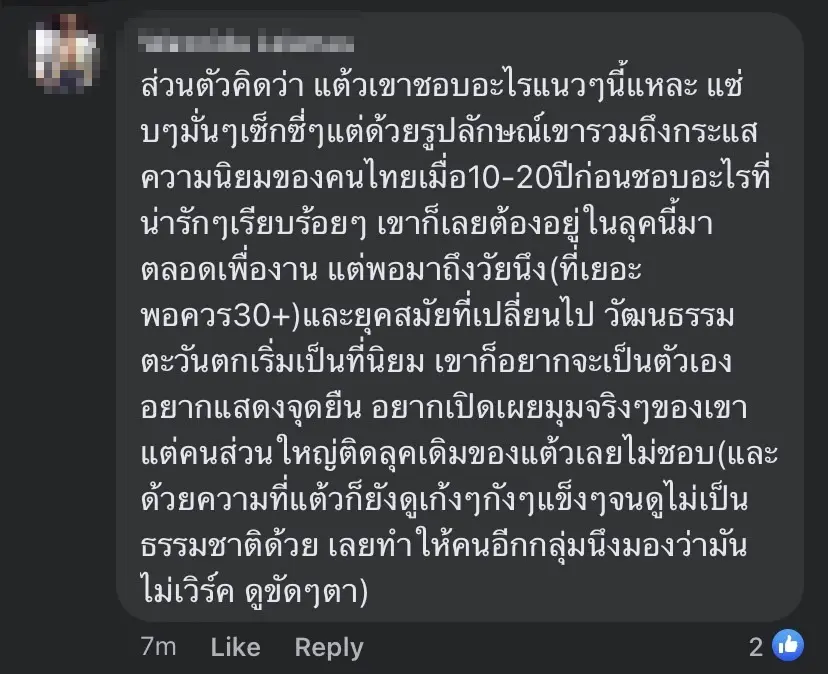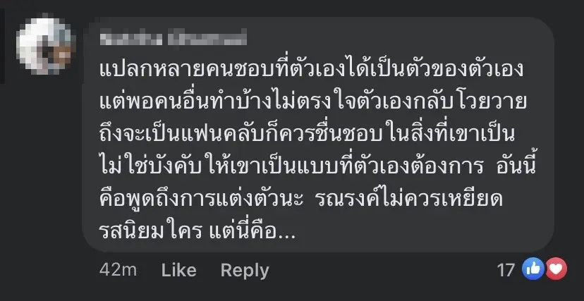 แต่ก็มีชาวเน็ตบางส่วนที่เข้าใจแต้ว พร้อมกับฝากข้อความชวนคิดเอาไว้ว่า คนเรามันก็อยากมีหลายๆลุคแหละ , แปลกหลายคนชอบที่ตัวเองได้เป็นตัวของตัวเอง แต่พอคนอื่นทำบ้างไม่ตรงใจตัวเองกลับโวยวาย ถึงจะเป็นแฟนคลับก็ควรชื่นชอบในสิ่งที่เขาเป็น ไม่ใช่บังคับให้เขาเป็นแบบที่ตัวเองต้องการ อันนี้คือพูดถึงการแต่งตัวนะ รณรงค์ไม่ควรเหยียด รสนิยมใคร แต่นี่คือ…