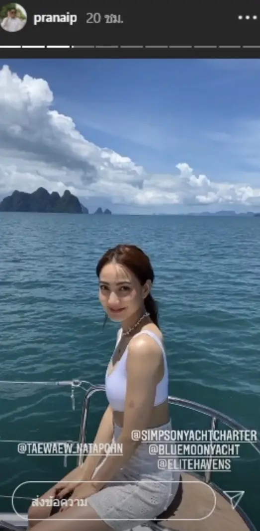 ซึ่งนอกจากนี้ ยังมีการลงสตอรี่ในอินสตาแกรมส่วนตัว โดยไฮโซณัย ได้ลงภาพแผ่นหลังขาวๆของสาว แต้ว ณฐพร นั้นเอง เรียกได้ว่า ทริปนี้นอกจากจะเป็นทริปเที่ยวกับแก๊งเพื่อนสาวเเล้ว ก็ยังถือว่าเป็นการเปิดตัวกับแก๊งเฟอร์บี้ด้วยนั้นแหละค่า
